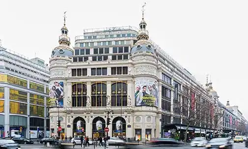 Just steps from the Opéra, this world-famous department store features luxury brands, gourmet food halls, and its iconic stained-glass dome. A must-visit for high fashion, beauty, and an incredible rooftop view of Paris.